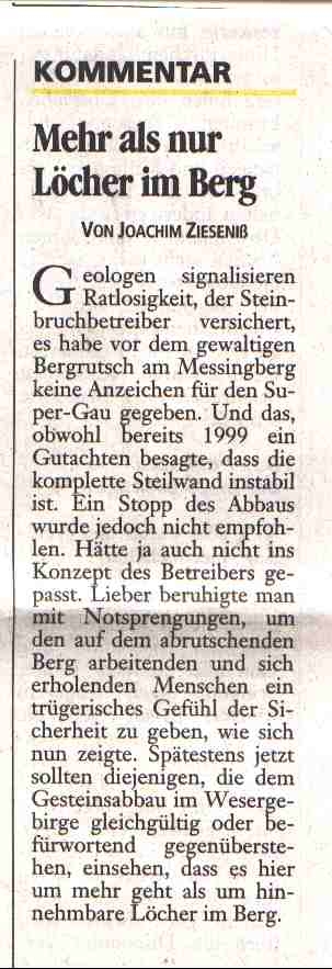 zum Thema: Massiver Bergrutsch am Messingberg/ Wesergebirge am 11.12.2004 - Weitere Informationen